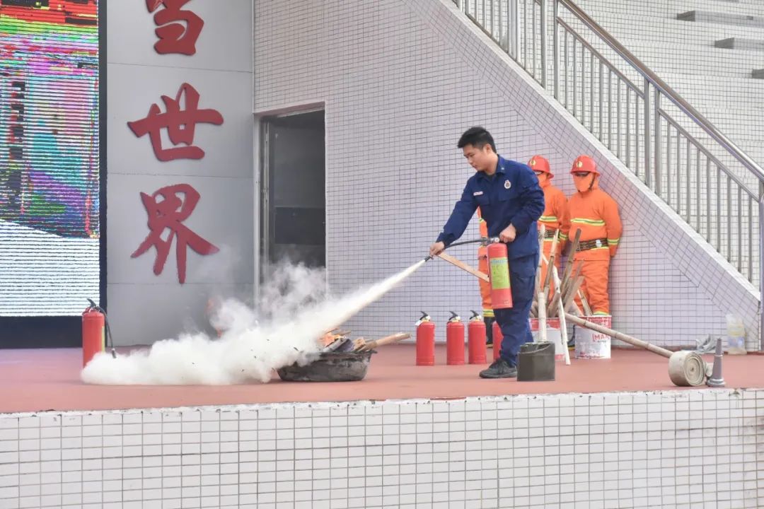 理論知識過關,接下來消防志愿者團隊就開始實際演練滅火器的使用。